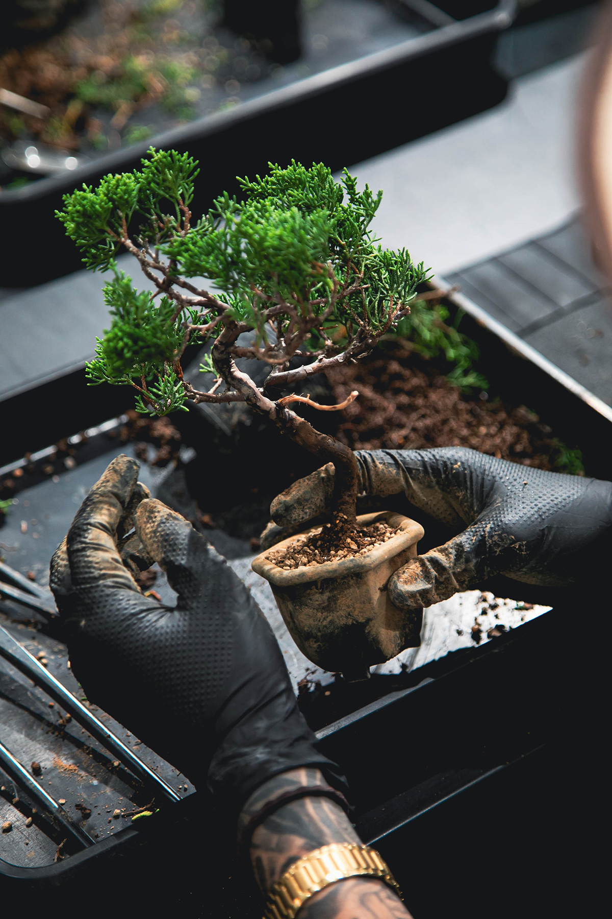 小さな鉢に樹をおさめるその過程には、自然と向き合い、自分の内側を静かに見つめる時間が流れています。